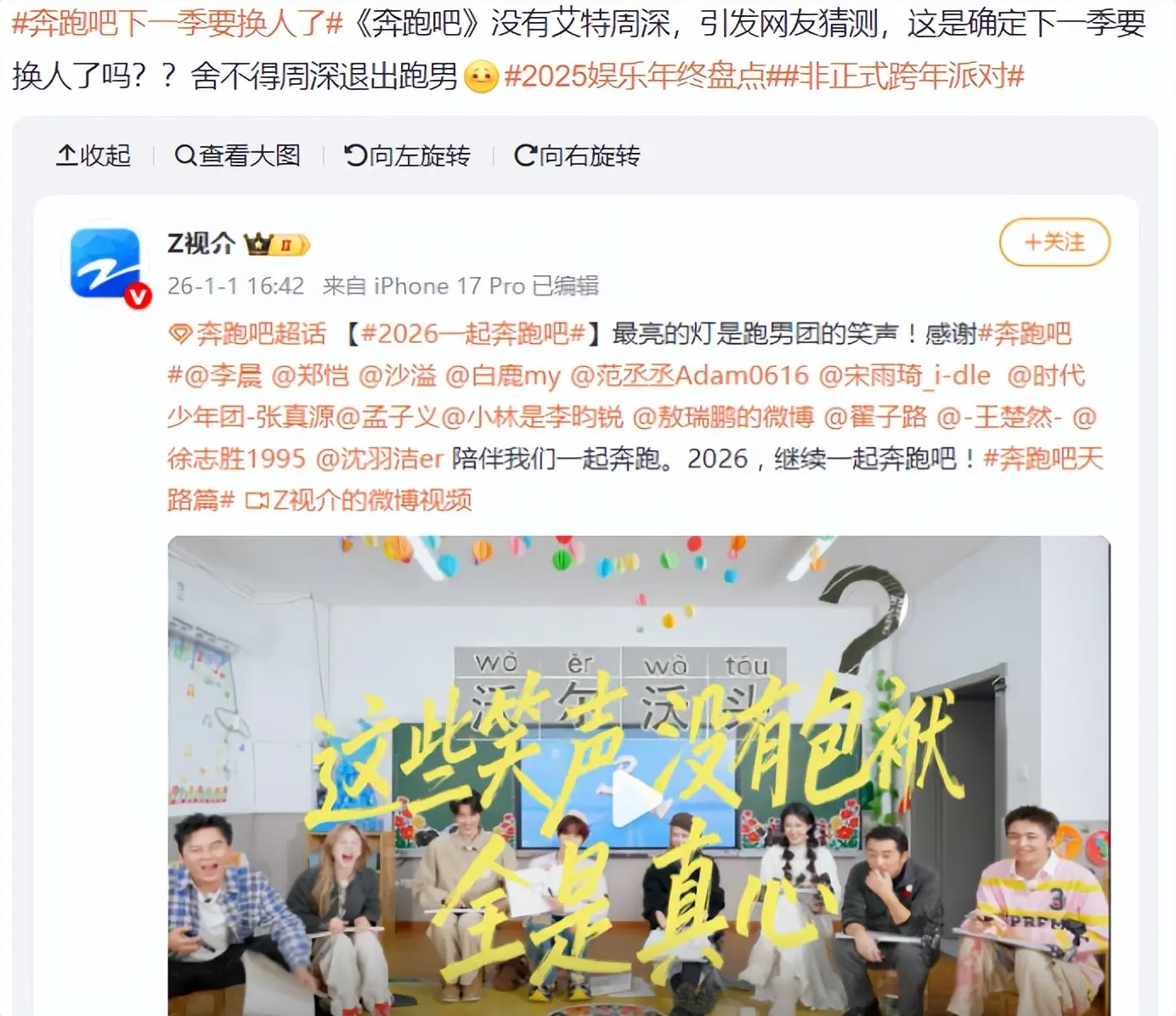 1月1日,《驱驰吧》官方发出一条音讯,艾特了参与录制的许多明星,属观念网友发现,官方竟莫得艾特周深,这么的情况出现,大师忍不住问:下一季是莫得周深了吗?